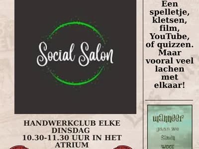 Ontdek de gezelligheid met elkaar! Samen met andere bewoners gaan we elke woensdagochtend iets gezelligs doen. Alles is mogelijk, als het maar gezellig is.